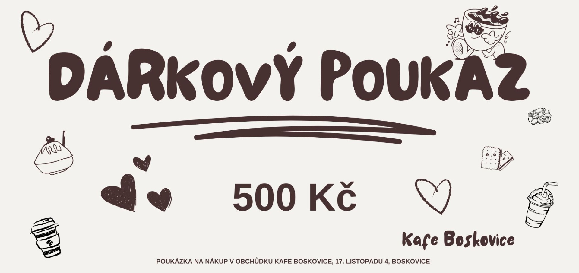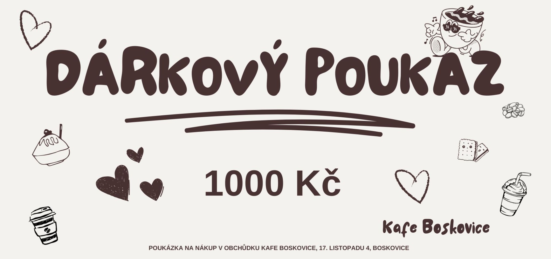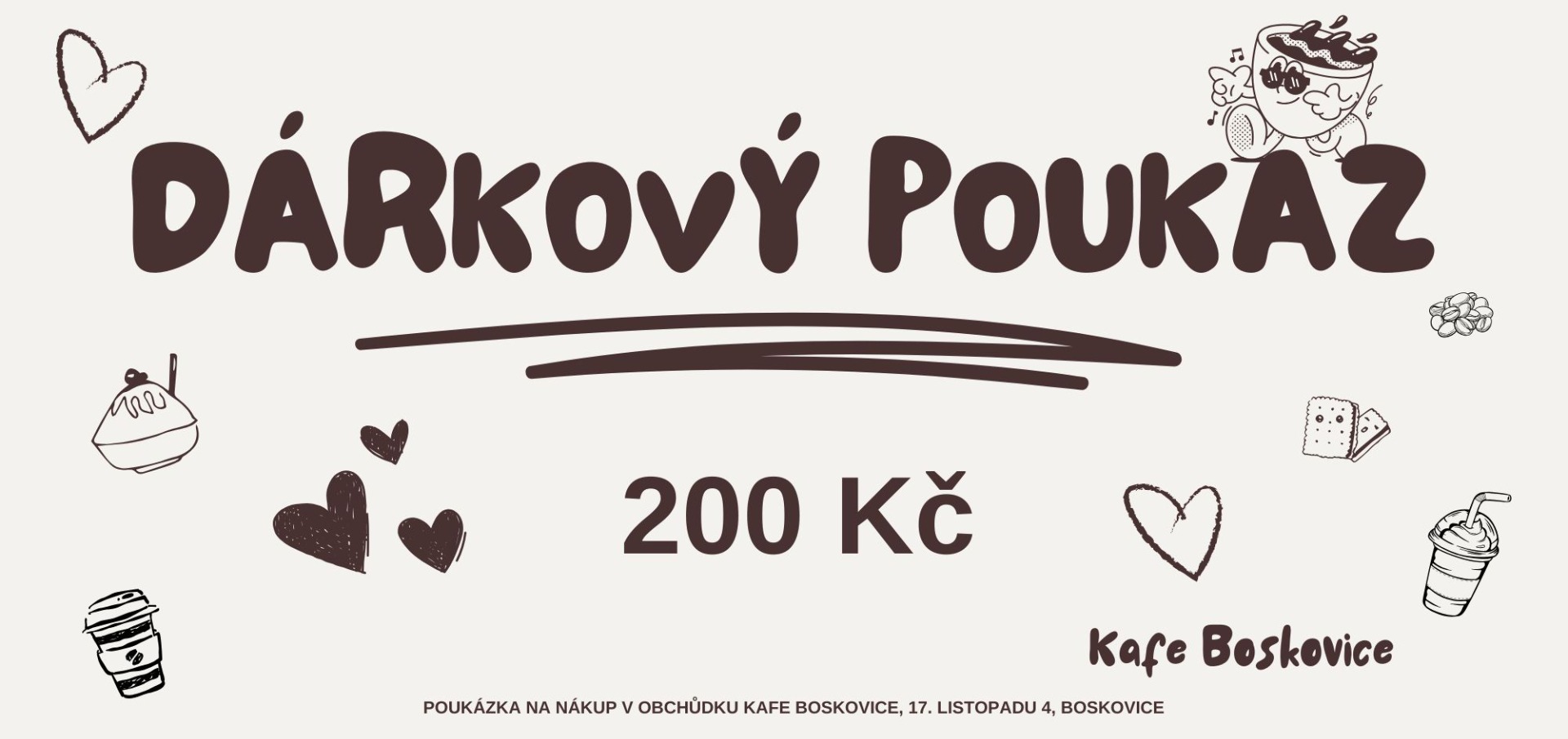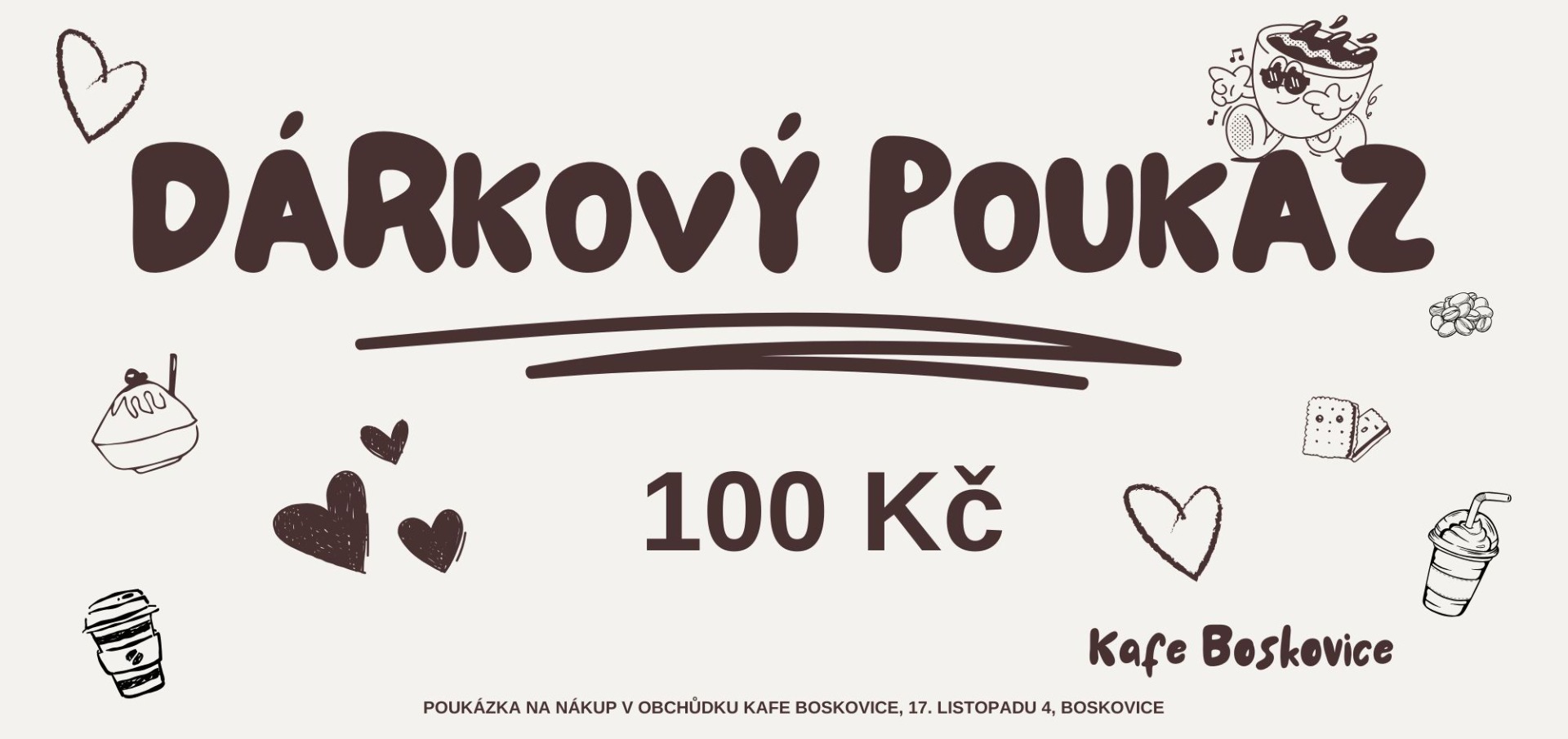 Nevíš co k narozkám, svátku nebo jen tak pro radost? Tak kup dárkové poukazy v hodnotě 100, 200, 500 a 1000 Kč. Nebo si částku vyber.