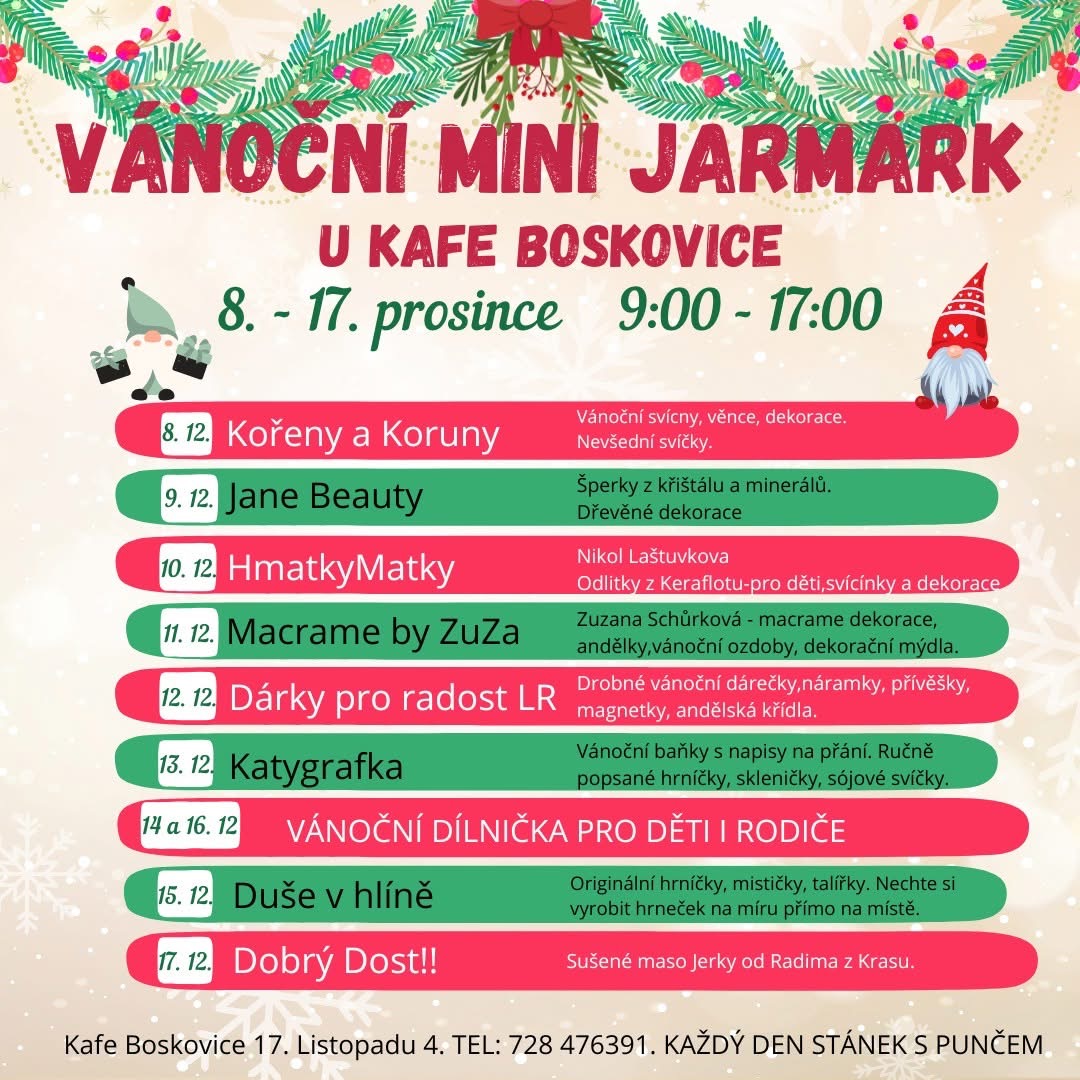 28.11. 13-20:00Najdete náš stánek v Rájci-Jestřebí na Vánočních trzích před bytovým domem Ermia