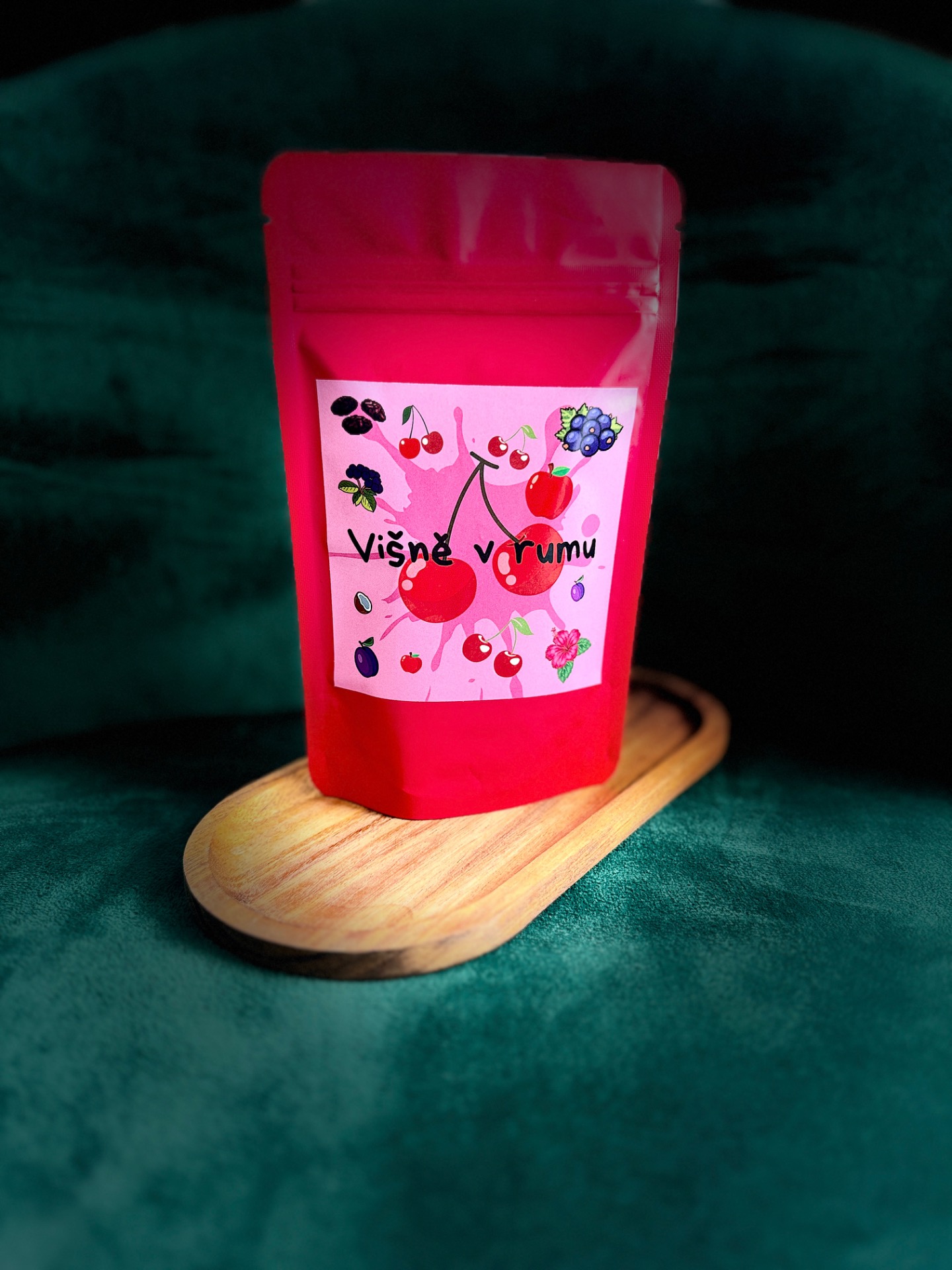 Exotické sušené ovoce v různém poměru: jablko , ibišek, aronie, rozinky, šípková kůra, švestka, třešeň, pomerančová kůra, hloh, kokos, ananas, černý rybíz, aroma pro intenzivní chuť rumu.