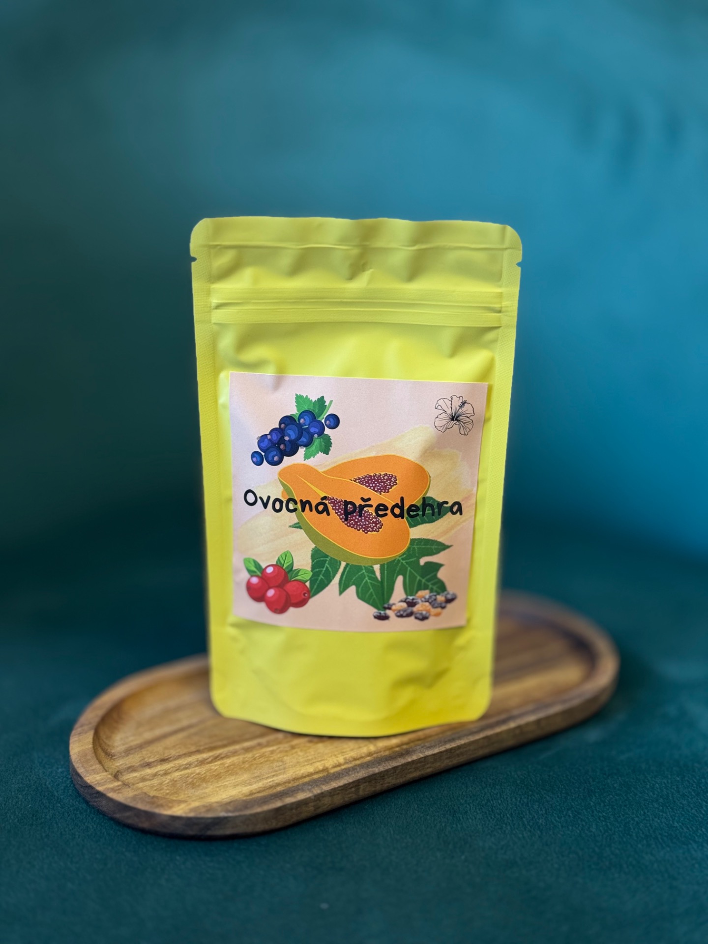 Kandovaná papája, ibišek, sušený černý rybíz, rozinky, sušené brusinky, aroma