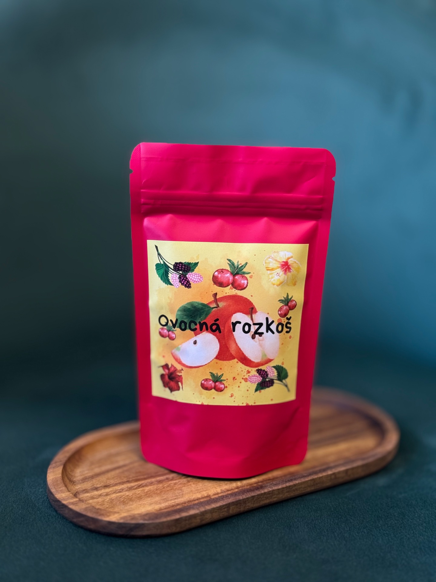 Sušené jablko, Ibišek, Plody moruše bílé, sušené brusinky, černý bez, celá lyofilizovaná ostružina, aronie, aroma
