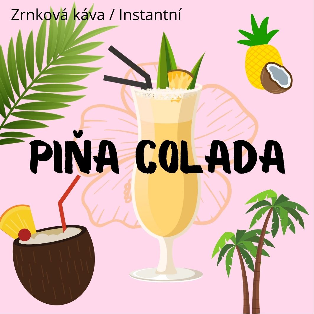 Rozpustná káva Piňa Colada spojuje jemnou chuť kvalitní kávy s exotickými tóny kokosu a ananasu, které připomínají letní koktejl pod palmami.